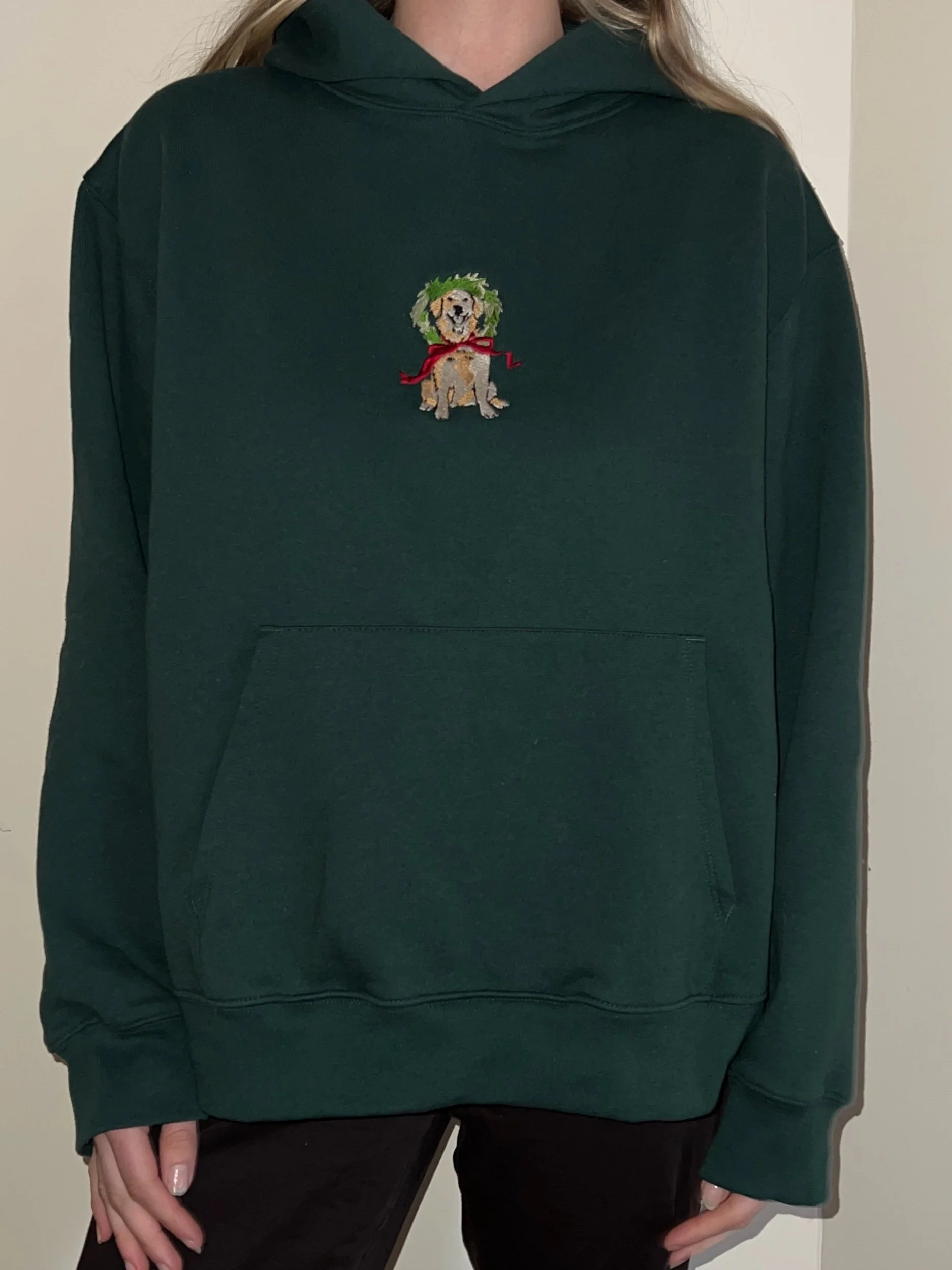 Shop › Christmas dog embroidered hoodie Image 1 of 5 Image 2 of 5 Image 3 of 5 Image 4 of 5 Image 5 of 5 Christmas dog embroidered hoodie $50.00 This Christmas dog hoodie is so comfortable and cozy, it’s made of cotton, and is perfect for any dog lovers out there. Size: XS S M L XL Quantity: Add To Cart Added! This Christmas dog hoodie is so comfortable and cozy, it’s made of cotton, and is perfect for any dog lovers out there.